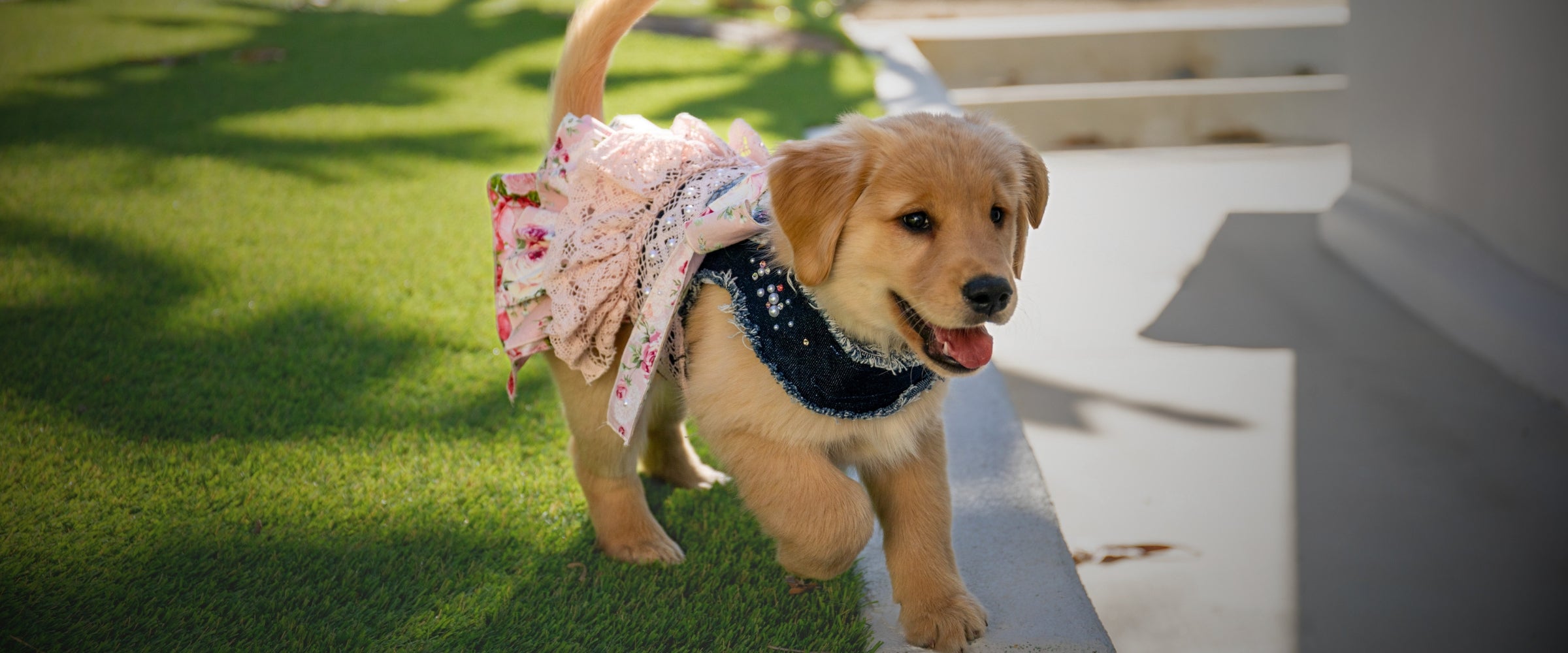 Each of our size charts have a neck, chest and length measurement. The neck measurement is around your pup’s neck, the chest measurement is around the widest part of your pup’s chest and the length is the measurement from neck to tail. If you don’t have a soft measuring tape, you can use a string to find the size and measure that with a ruler.