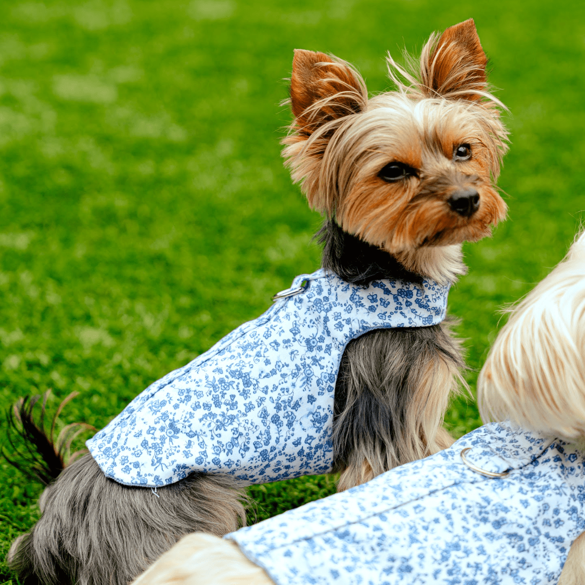 From our brand new Kelly Collection, indulge in style and security with our stunning Blue Floral Toile Harness and matching 5-foot leash (sold separately), handcrafted in Franklin, Tennessee. Available in seven sizes with convenient quiet hook and loop closures, our longer harnesses provide a comforting hug for your beloved pet, eliminating separation anxiety and promoting a sense of safety.